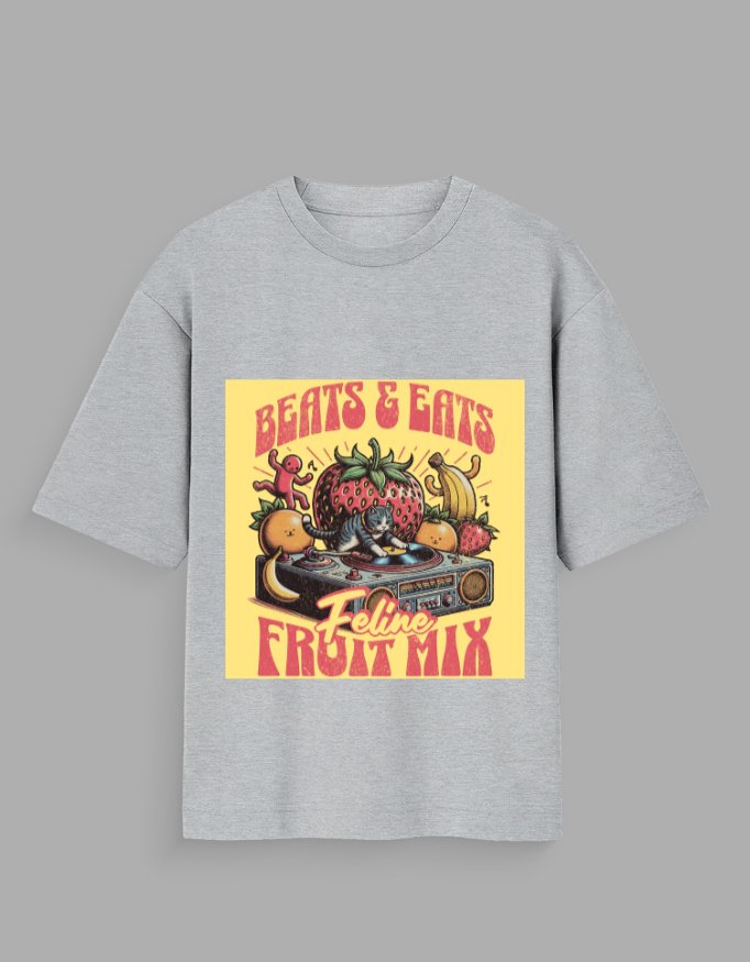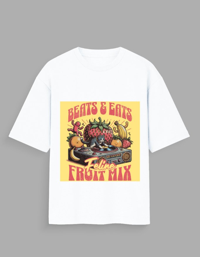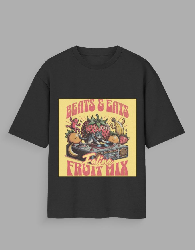 The Beats & Eats Feline Fruit Mix T-Shirt delivers bold illustration, premium cotton comfort, and a relaxed everyday fit — made for people who like their style fun and expressive.