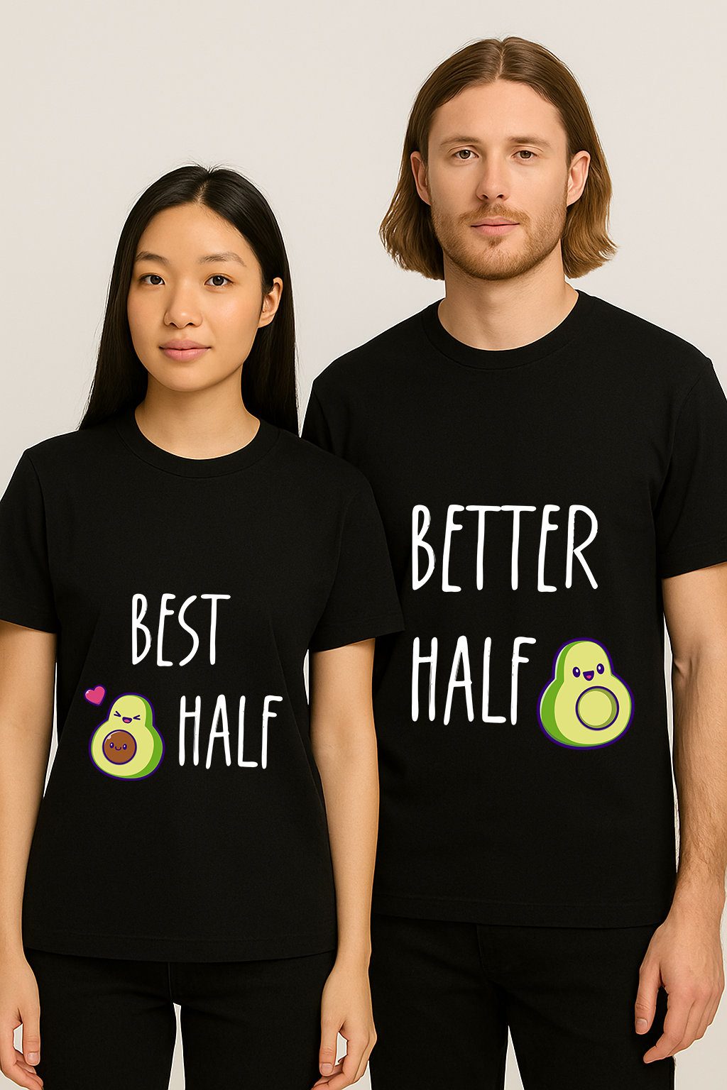 The Best Half / Better Half Couple T-Shirt Set is designed for couples who embrace their differences and wear them with confidence. With playful typography and a cute avocado graphic, this matching set brings humor, affection, and everyday comfort together.