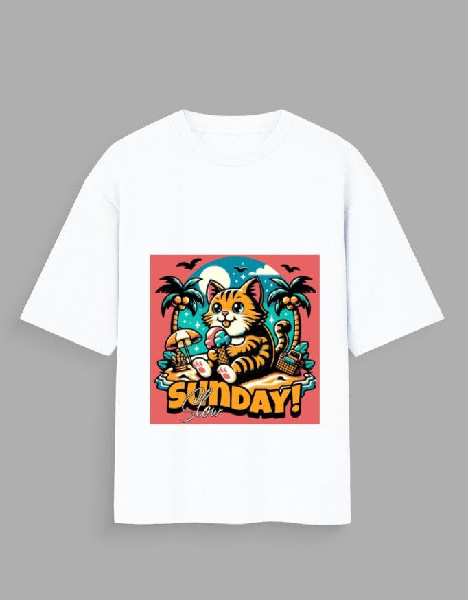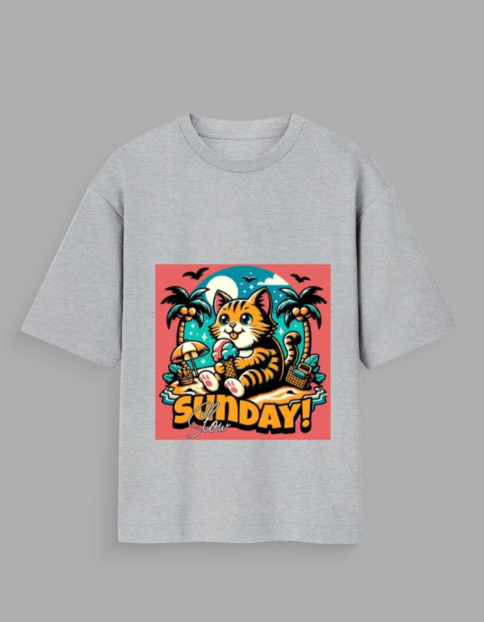 The Sunday Cat Graphic T-Shirt captures relaxed weekend energy with a cute illustrated cat enjoying a calm, tropical moment. Designed for comfort and easy styling, this tee brings cheerful vibes to your everyday wardrobe.
