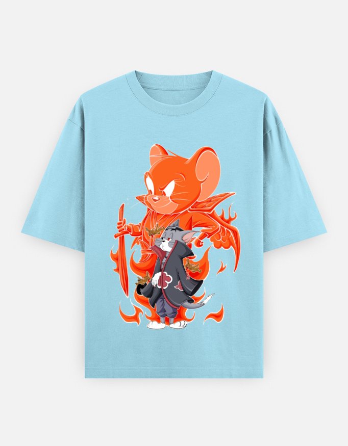 This exclusive Tom and Jerry Naruto T-Shirt is a hilarious and action-packed fusion of two beloved classics. The design features Tom dressed as a member of the Akatsuki, while Jerry is shown in a powerful, fiery form that mirrors Naruto’s Nine-Tails Chakra Mode. This artwork perfectly captures the spirit of both series, combining the eternal rivalry of Tom and Jerry with the intense ninja world of Naruto. As a result, you get a uniquely bold piece of apparel. It truly highlights your appreciation for this iconic crossover.